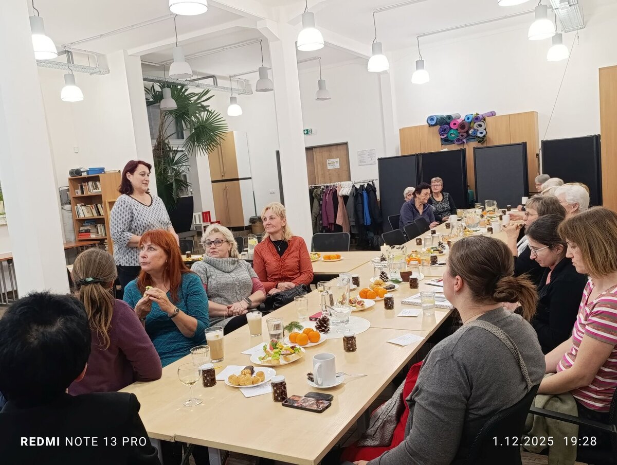 Po společném programu následovalo neformální posezení u kávy a drobného občerstvení, během něhož měly ženy možnost sdílet své zkušenosti, popovídat si a prohloubit vzájemné vztahy. Večer proběhl v milém, přátelském duchu a stal se příjemnou příležitostí k zastavení a setkání v adventním období.
